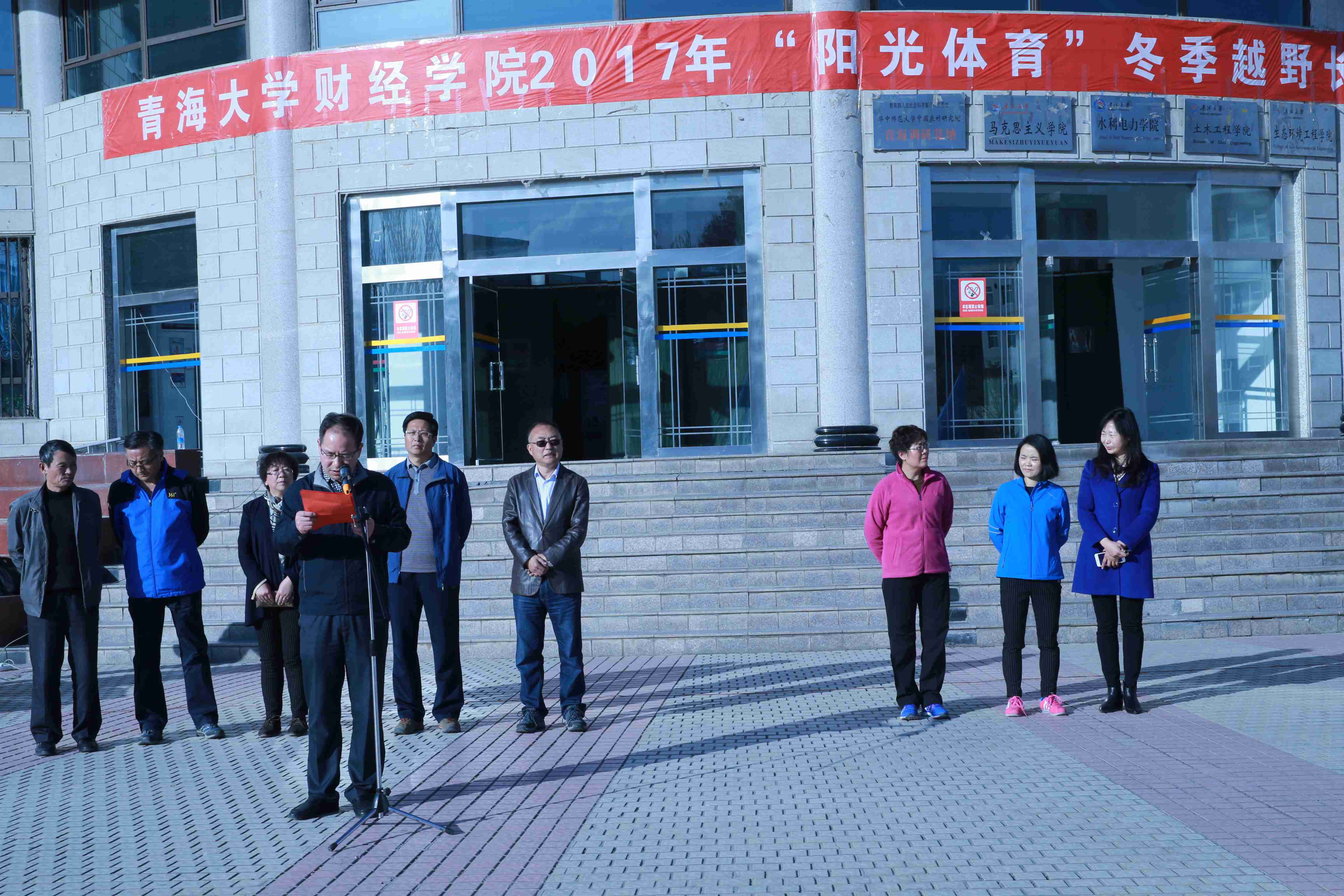 为了进一步活跃师生的体育文化活动,促进师生身心健康,强健师生体魄,学院于2017年11月8日下午16:00时在综合楼广场举行了h视频 2017年“阳光体育”冬季越野长跑比赛开幕式。院领导张宏岩、李双元、邢建民及全院师生参加了开幕式。院党委副书记邢建民主持了开幕式